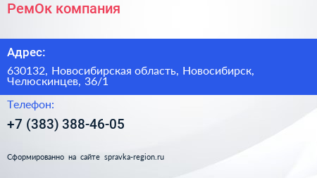 РемОк, компания по адресу 630132, Новосибирская область, Новосибирск, Челюскинцев, 36/1 в дальнейшем Организация, размещена в следующих категориях: