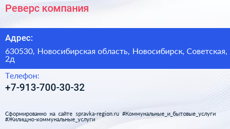 Реверс, компания по адресу 630530, Новосибирская область, Новосибирск, Советская, 2д в дальнейшем Организация, размещена в следующих категориях: