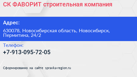 СК ФАВОРИТ, строительная компания по адресу 630078, Новосибирская область, Новосибирск, Пермитина, 24/2 в дальнейшем Организация, размещена в следующих категориях: