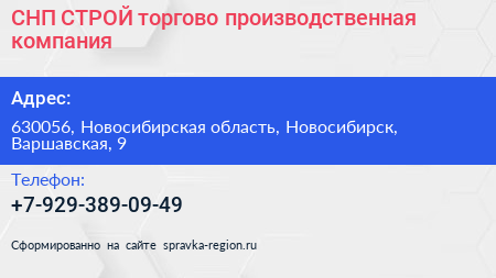 СНП-СТРОЙ, торгово-производственная компания по адресу 630056, Новосибирская область, Новосибирск, Варшавская, 9 в дальнейшем Организация, размещена в следующих категориях: