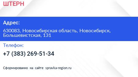 ШТЕРН по адресу 630083, Новосибирская область, Новосибирск, Большевистская, 131 в дальнейшем Организация, размещена в следующих категориях: