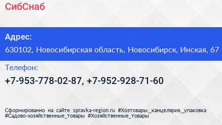 СибСнаб по адресу 630102, Новосибирская область, Новосибирск, Инская, 67 в дальнейшем Организация, размещена в следующих категориях: