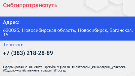 Сибгипротранспуть по адресу 630025, Новосибирская область, Новосибирск, Баганская, 15 в дальнейшем Организация, размещена в следующих категориях: