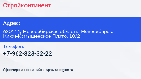 Стройконтинент по адресу 630114, Новосибирская область, Новосибирск, Ключ-Камышенское Плато, 10/2 в дальнейшем Организация, размещена в следующих категориях: