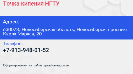 Точка кипения, НГТУ по адресу 630073, Новосибирская область, Новосибирск, проспект Карла Маркса, 20 в дальнейшем Организация, размещена в следующих категориях:
