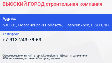 ВЫСОКИЙ ГОРОД, строительная компания по адресу 630501, Новосибирская область, Новосибирск, С-200, 10 в дальнейшем Организация, размещена в следующих категориях: