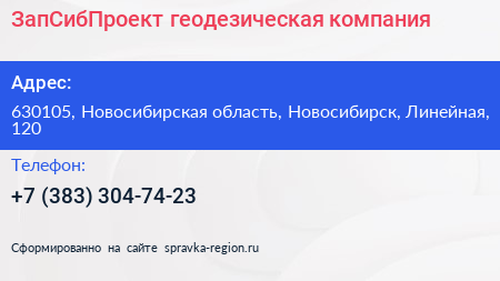 ЗапСибПроект, геодезическая компания по адресу 630105, Новосибирская область, Новосибирск, Линейная, 120 в дальнейшем Организация, размещена в следующих категориях: