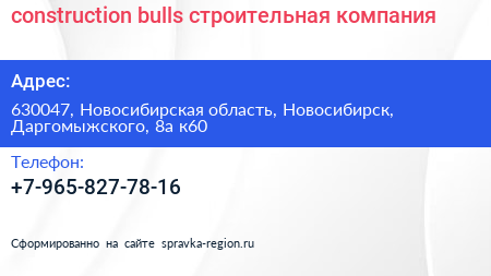 construction-bulls, строительная компания по адресу 630047, Новосибирская область, Новосибирск, Даргомыжского, 8а к60 в дальнейшем Организация, размещена в следующих категориях: