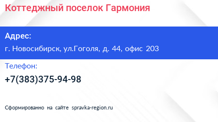 Коттеджный поселок «Гармония» по адресу г. Новосибирск, ул.Гоголя, д. 44, офис 203 в дальнейшем Организация, размещена в следующих категориях: