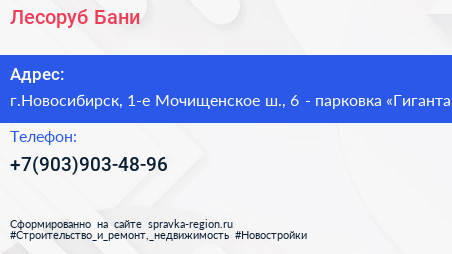 Лесоруб Бани по адресу г.Новосибирск, 1-е Мочищенское ш., 6 - парковка «Гиганта» в дальнейшем Организация, размещена в следующих категориях: