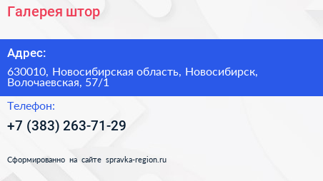 Галерея штор по адресу 630010, Новосибирская область, Новосибирск, Волочаевская, 57/1 в дальнейшем Организация, размещена в следующих категориях: