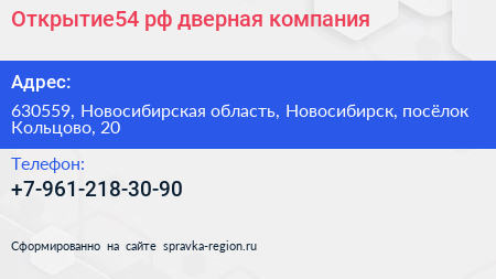 Открытие54.рф, дверная компания по адресу 630559, Новосибирская область, Новосибирск, посёлок Кольцово, 20 в дальнейшем Организация, размещена в следующих категориях: