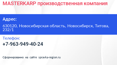 MASTERKARP, производственная компания по адресу 630120, Новосибирская область, Новосибирск, Титова, 232/1 в дальнейшем Организация, размещена в следующих категориях: