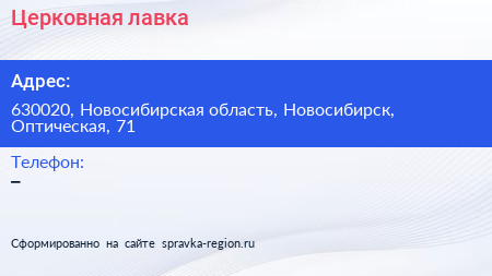 Церковная лавка по адресу 630020, Новосибирская область, Новосибирск, Оптическая, 71 в дальнейшем Организация, размещена в следующих категориях:
