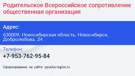 Родительское Всероссийское сопротивление, общественная организация по адресу 630009, Новосибирская область, Новосибирск, Добролюбова, 24 в дальнейшем Организация, размещена в следующих категориях: