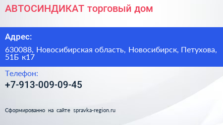 АВТОСИНДИКАТ, торговый дом по адресу 630088, Новосибирская область, Новосибирск, Петухова, 51Б к17 в дальнейшем Организация, размещена в следующих категориях: