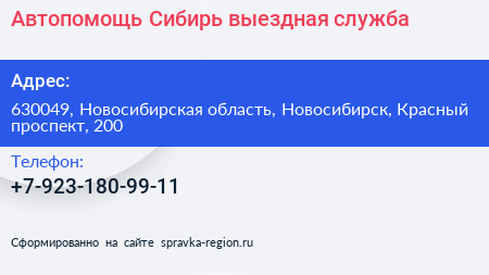 Автопомощь-Сибирь, выездная служба по адресу 630049, Новосибирская область, Новосибирск, Красный проспект, 200 в дальнейшем Организация, размещена в следующих категориях: