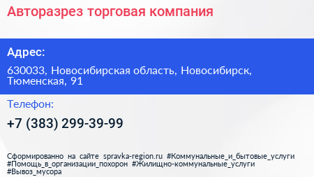 Авторазрез, торговая компания по адресу 630033, Новосибирская область, Новосибирск, Тюменская, 91 в дальнейшем Организация, размещена в следующих категориях: