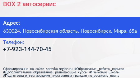 BOX#2, автосервис по адресу 630024, Новосибирская область, Новосибирск, Мира, 65а в дальнейшем Организация, размещена в следующих категориях: