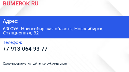 BUMEROK.RU по адресу 630096, Новосибирская область, Новосибирск, Станционная, 82 в дальнейшем Организация, размещена в следующих категориях: