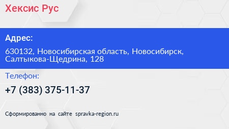 Хексис Рус по адресу 630132, Новосибирская область, Новосибирск, Салтыкова-Щедрина, 128 в дальнейшем Организация, размещена в следующих категориях: