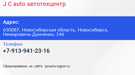 J-C auto, автотехцентр по адресу 630087, Новосибирская область, Новосибирск, Немировича-Данченко, 146 в дальнейшем Организация, размещена в следующих категориях: