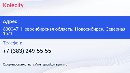 Kolecity по адресу 630047, Новосибирская область, Новосибирск, Северная, 15/1 в дальнейшем Организация, размещена в следующих категориях: