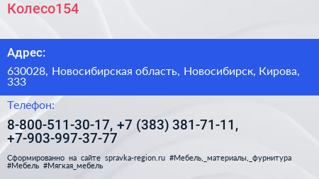 Колесо154 по адресу 630028, Новосибирская область, Новосибирск, Кирова, 333 в дальнейшем Организация, размещена в следующих категориях: