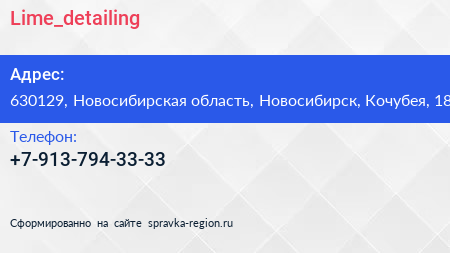 Lime_detailing по адресу 630129, Новосибирская область, Новосибирск, Кочубея, 18 в дальнейшем Организация, размещена в следующих категориях: