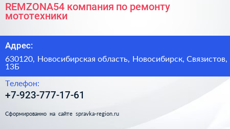 REMZONA54, компания по ремонту мототехники по адресу 630120, Новосибирская область, Новосибирск, Связистов, 13Б в дальнейшем Организация, размещена в следующих категориях: