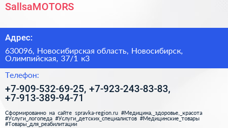 SallsaMOTORS по адресу 630096, Новосибирская область, Новосибирск, Олимпийская, 37/1 к3 в дальнейшем Организация, размещена в следующих категориях: