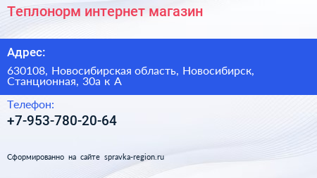 Теплонорм, интернет-магазин по адресу 630108, Новосибирская область, Новосибирск, Станционная, 30а к А в дальнейшем Организация, размещена в следующих категориях: