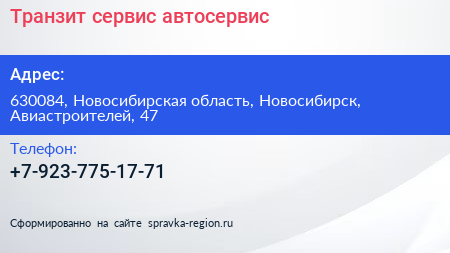 Транзит сервис, автосервис по адресу 630084, Новосибирская область, Новосибирск, Авиастроителей, 47 в дальнейшем Организация, размещена в следующих категориях: