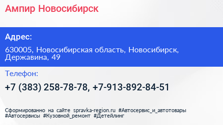 Ампир-Новосибирск по адресу 630005, Новосибирская область, Новосибирск, Державина, 49 в дальнейшем Организация, размещена в следующих категориях: