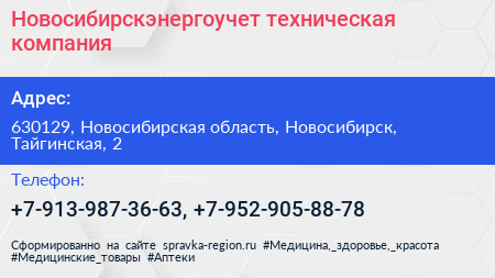 Новосибирскэнергоучет, техническая компания по адресу 630129, Новосибирская область, Новосибирск, Тайгинская, 2 в дальнейшем Организация, размещена в следующих категориях: