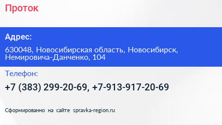 Проток по адресу 630048, Новосибирская область, Новосибирск, Немировича-Данченко, 104 в дальнейшем Организация, размещена в следующих категориях: