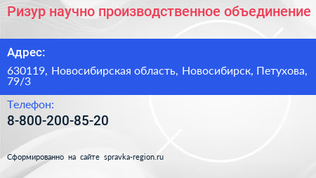 Ризур, научно-производственное объединение по адресу 630119, Новосибирская область, Новосибирск, Петухова, 79/3 в дальнейшем Организация, размещена в следующих категориях: