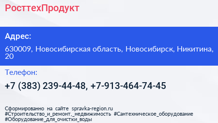 РосттехПродукт по адресу 630009, Новосибирская область, Новосибирск, Никитина, 20 в дальнейшем Организация, размещена в следующих категориях:
