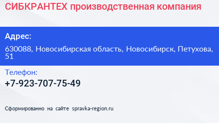 СИБКРАНТЕХ, производственная компания по адресу 630088, Новосибирская область, Новосибирск, Петухова, 51 в дальнейшем Организация, размещена в следующих категориях: