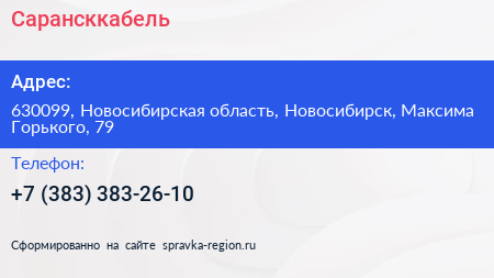 Сарансккабель по адресу 630099, Новосибирская область, Новосибирск, Максима Горького, 79 в дальнейшем Организация, размещена в следующих категориях: