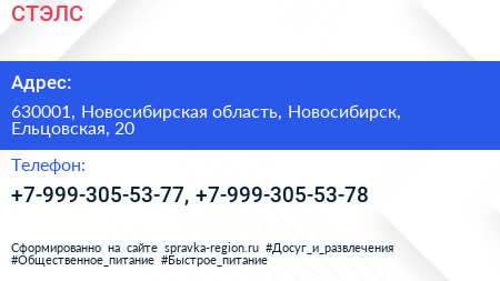 СТЭЛС по адресу 630001, Новосибирская область, Новосибирск, Ельцовская, 20 в дальнейшем Организация, размещена в следующих категориях: