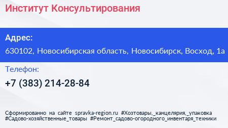 Институт Консультирования по адресу 630102, Новосибирская область, Новосибирск, Восход, 1а в дальнейшем Организация, размещена в следующих категориях: