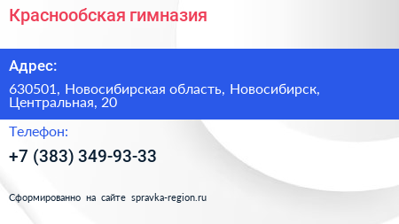 Краснообская, гимназия по адресу 630501, Новосибирская область, Новосибирск, Центральная, 20 в дальнейшем Организация, размещена в следующих категориях: