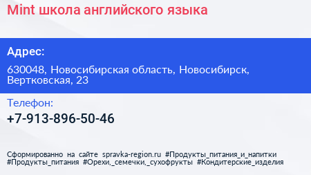 Mint, школа английского языка по адресу 630048, Новосибирская область, Новосибирск, Вертковская, 23 в дальнейшем Организация, размещена в следующих категориях: