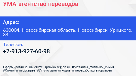 УМА, агентство переводов по адресу 630004, Новосибирская область, Новосибирск, Урицкого, 34 в дальнейшем Организация, размещена в следующих категориях:
