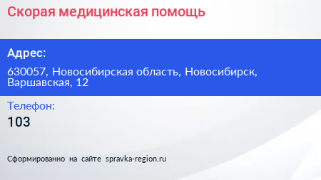 Скорая медицинская помощь по адресу 630057, Новосибирская область, Новосибирск, Варшавская, 12 в дальнейшем Организация, размещена в следующих категориях: