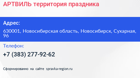 АРТВИЛЬ, территория праздника по адресу 630001, Новосибирская область, Новосибирск, Сухарная, 96 в дальнейшем Организация, размещена в следующих категориях: