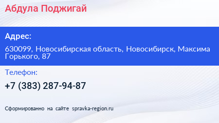 Абдула, Поджигай! по адресу 630099, Новосибирская область, Новосибирск, Максима Горького, 87 в дальнейшем Организация, размещена в следующих категориях: