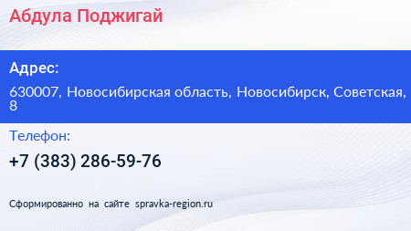 Абдула, Поджигай! по адресу 630007, Новосибирская область, Новосибирск, Советская, 8 в дальнейшем Организация, размещена в следующих категориях: