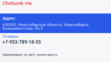 Cheburek.me по адресу 630102, Новосибирская область, Новосибирск, Большевистская, 45/1 в дальнейшем Организация, размещена в следующих категориях: